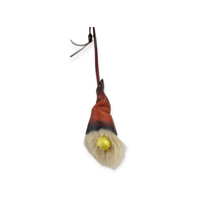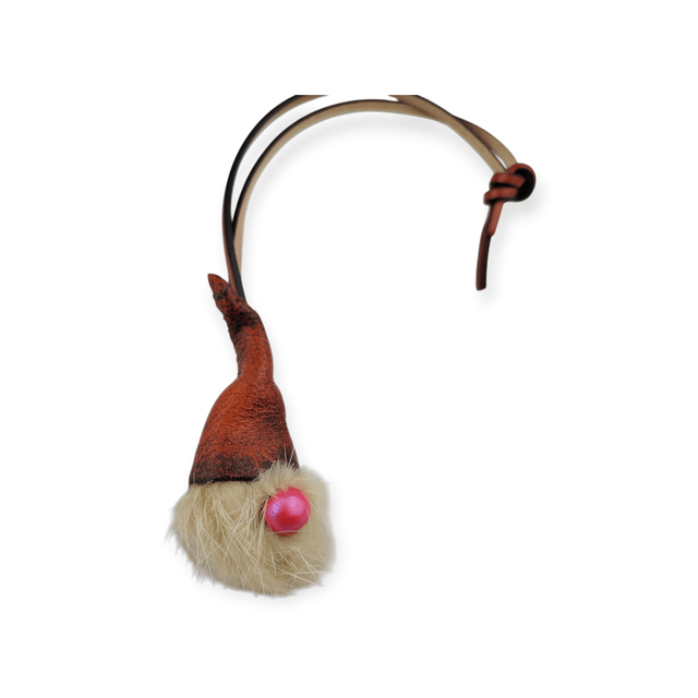 Réalisé à partir de chute de cuir et de fourrure synthétique, ce gnome n’attend qu’une chose : être accroché ! Que cela soit à votre sac, rétroviseur ou dans votre sapin.