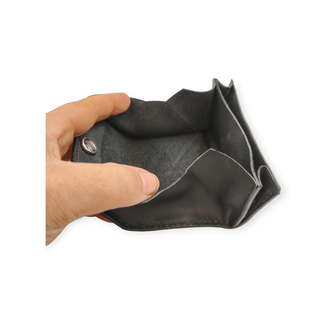 Porte monnaie grande capacité, qui se plie en 3 pour accueillir votre monnaie. Un compartiment permet de séparer les billets. Fermeture par bouton pression.