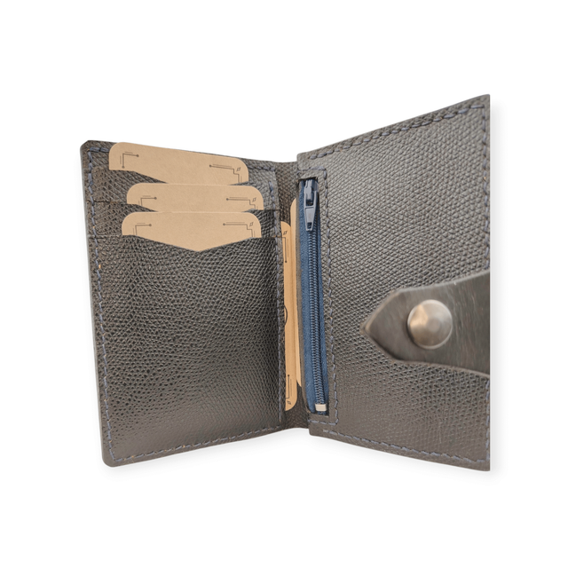 Le modèle Praksis est un modèle compact et astucieux de portefeuille. Il tient dans une poche arrière de pantalon sans prendre une place excessive.