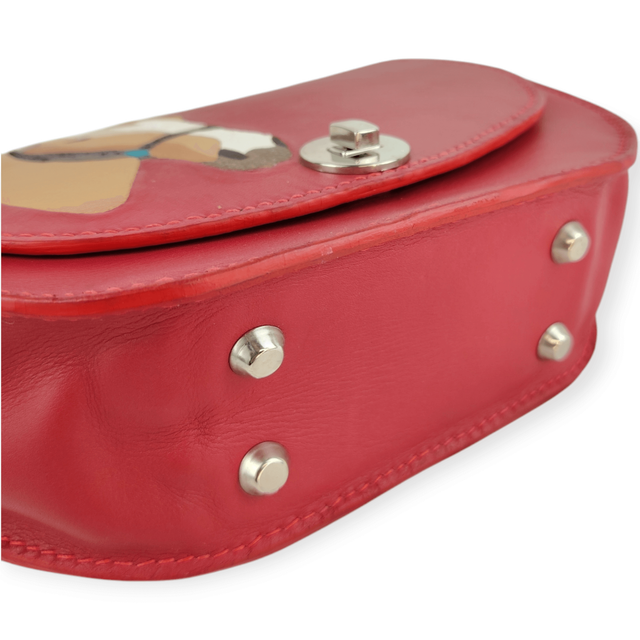 Modèle de sac Vicky, ici revisité avec une technique : la marqueterie de cuir. Cette technique permet d’assembler des morceaux de cuir, côte-à-côte, pour former un motif et donner l’illusion que le cuir est peint et d’un seul tenant.