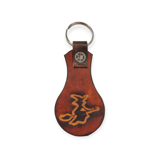Porte clé en cuir, avec un motif embossé au centre.