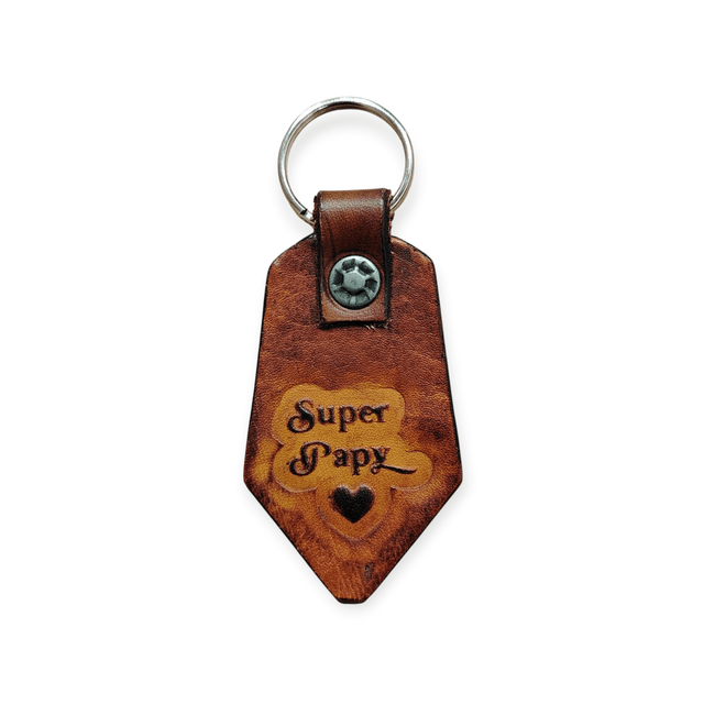 Forme triangle ou ronde, il se décline dans des nuances de marron. L’arrière du porte clé est teint en marron et lisse.